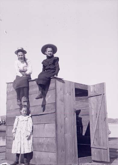 Enligt text som medföljde bilden: "Lysekil. Lilly, Vilma, Ester vid Lyckes Badhus 9/7 1901."