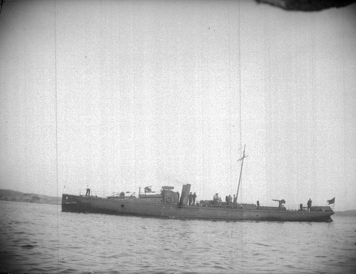 Enligt text som medföljde bilden: "Lysekil. Svenska torpedbåten "Freke" (n. 5) vid bojen,