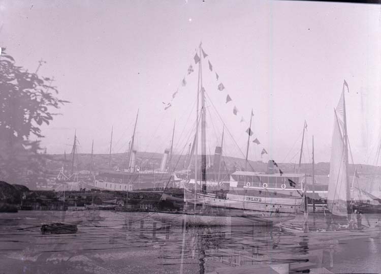 Enligt text som medföljde bilden: "Lysekil. Jakten Thelma. Ångbåtsbryggan. Dubbelplåt 23/6 1901."