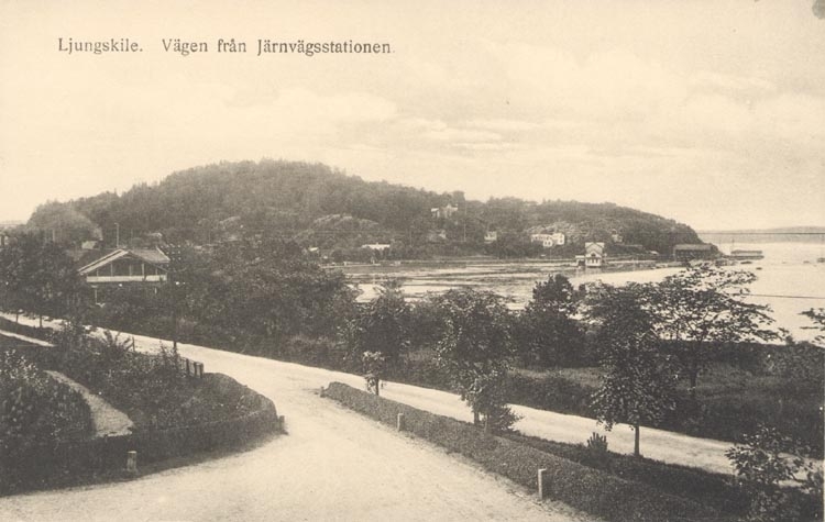Tryckt text på kortet: "Ljungskile. Vägen från Järnvägsstationen".