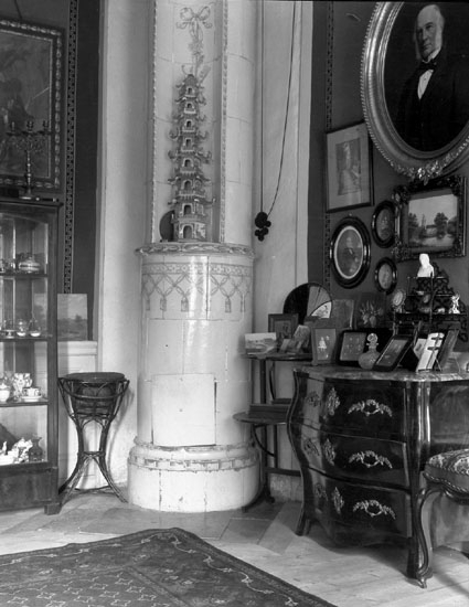 Rumsinteriör med en kakelugn. "Förmaket, Gubbero." enligt notering.