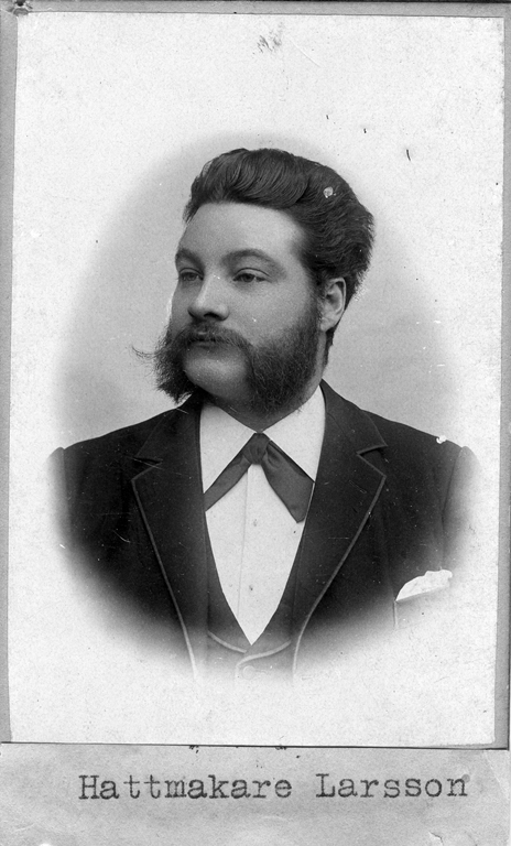 Text på kortets baksida: "Hattmakare Larsson".