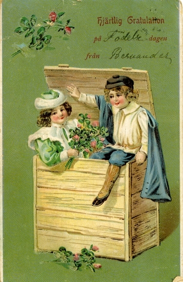 Notering på kortet: Hjärtlig Gratulation på födelsedagen från Bernander.
