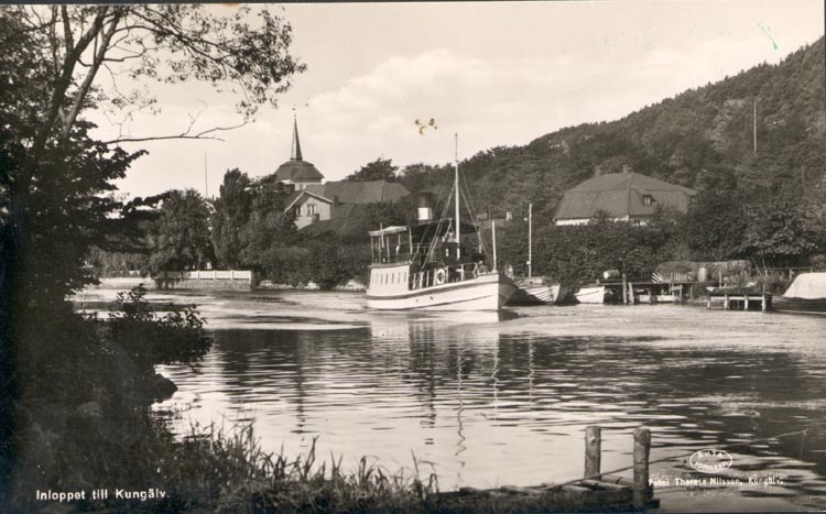 Tryckt text på kortet: "Inloppet till Kungälv".