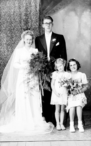 Ateljefoto, brudpar med näbbar::
