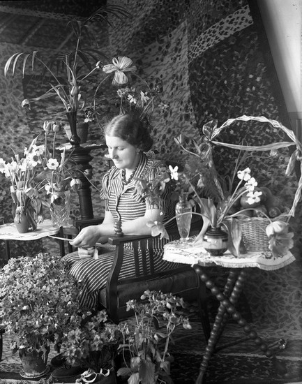 Kvinna med födelsedagsblommor
