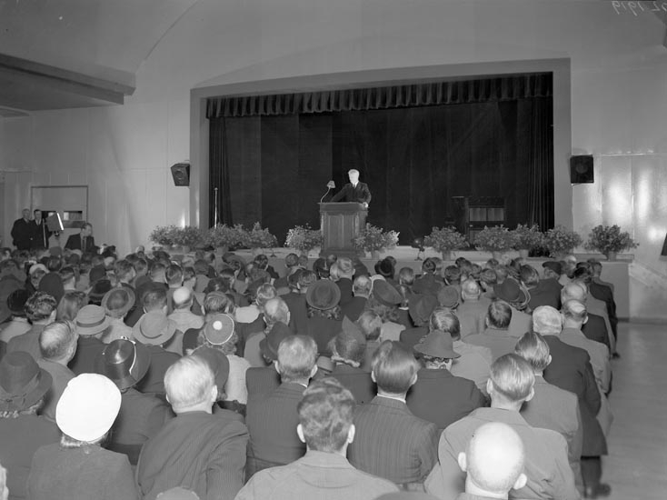 Torgny Segerstedt håller föredrag på Folkets Park, Uddevalla