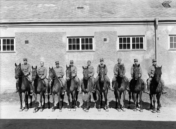 Uppgift enligt fotografen: "Uddevalla. Militärer till häst."