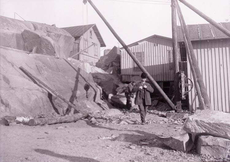 Enligt text som medföljde bilden: "Arbete vid badhuset".