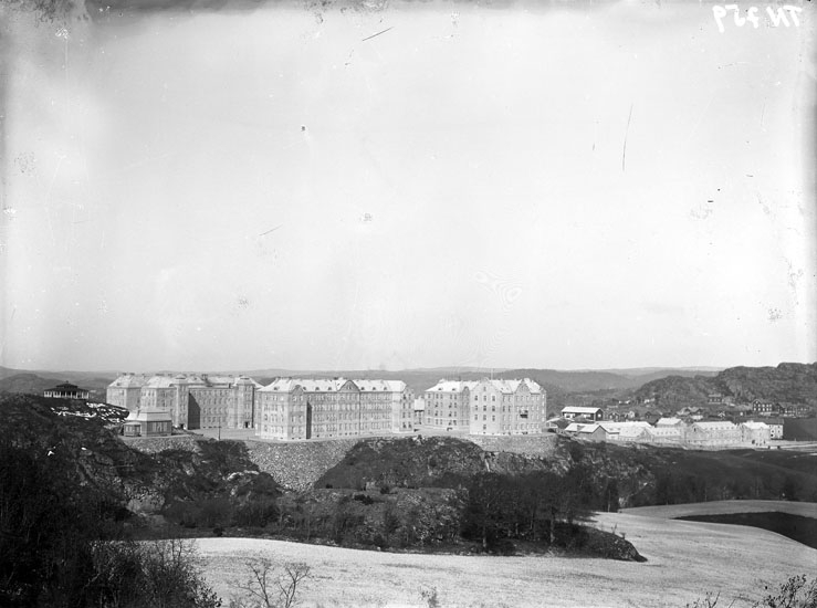 Enligt tidigare noteringar: "Bohusläns regemente, kasernbyggnader från öster."