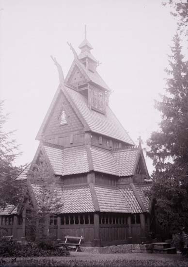 Enligt text som medföljde bilden. "Gols stafkyrka på Bygdö."
