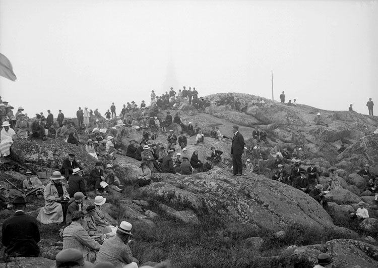 Juli 1924. "Vikarvets ting", sammankomst utomhus på berg. Rektorn från Grebbestad folkhögskola talar.