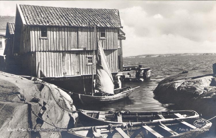 Tryckt text på kortet: "Motiv från Ringareskär, Smögen".