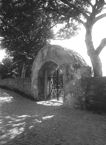 Juni 1924. Kyrkogårdsport, Fiskebäckskil.