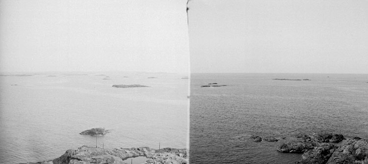 (Stereo karta XVIII) Pater Noster. Utsikt inåt land från fyren. 29 Augusti 1926.