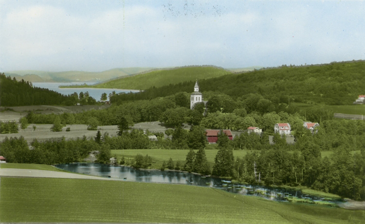 Vykort. "Ucklum. Sjön Hällungen i bakgrunden".