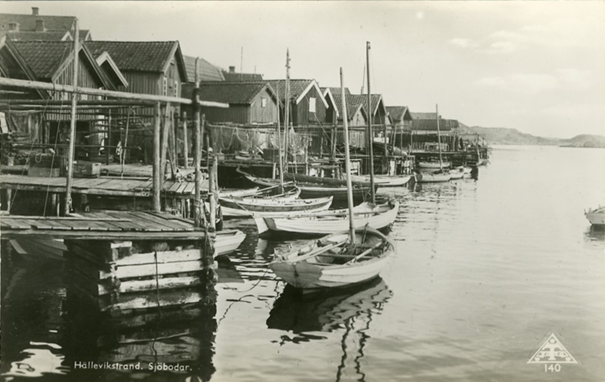 Text på kortet: "Hälleviksstrand. Sjöbodar".