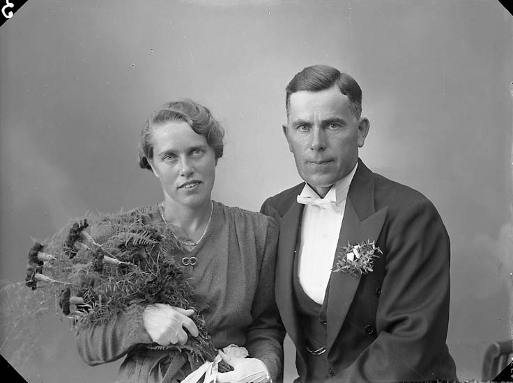 Enligt fotografens journal nr 7 1944-1950: "Pettersson, Herr Karl Allestorp Kville brudpar".
