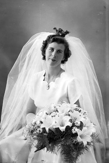 Enligt fotografens journal nr 8 1951-1957: "Samuelsson, Brudpar (Gösta) Ödsmål bruden".