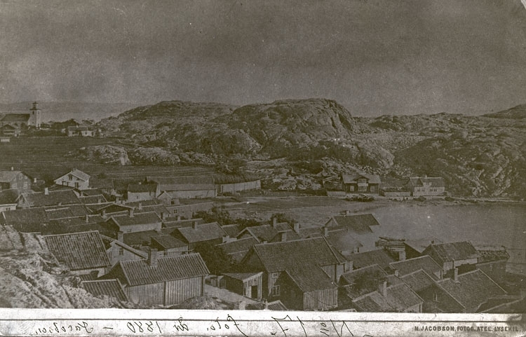 Enligt text som ristats i emulsionen: "Sanden Lysekil no. 17 foto år 1880 Jacobson kopia 1920."