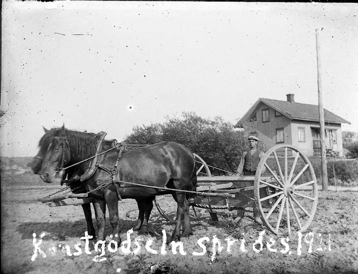 Enligt text på fotot: "Konstgödseln sprides, 1921".