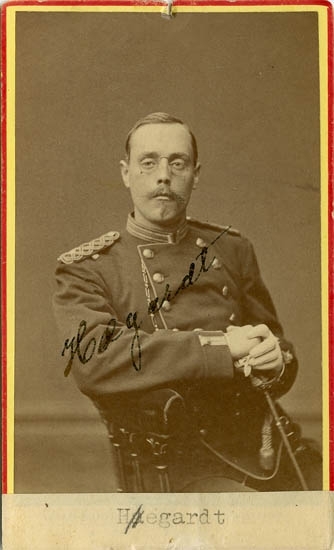 Text på kortets baksida: "Underlöjtnant Anders Christian Hegardt på I 17. Född 1856 död 1887".