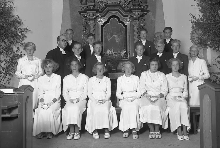 Enligt fotografens journal nr 8 1951-1957: "Konfirmanderna Komminister Nyblom Jörlanda".
