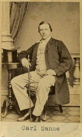 Text på kortets baksida: "Carl Sanne. Handelsresande. Död i Göteborg. Bror till J.N. Sanne".