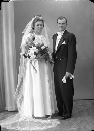 Enligt fotografens journal nr 8 1951-1957: "Svensson, Brudpar, Elmer, Hantverkarg. 2 Kungälv".