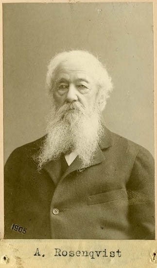 Text på kortets baksida: "A. Rundqvist vid sin nitti års dag 1905, f. 1815 d. 1907. Häradshövding".