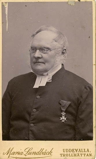 Text på kortets baksida: "Prosten Gustaf Theodor Ljunggren, Uddevalla. F 1812 d. 1900".