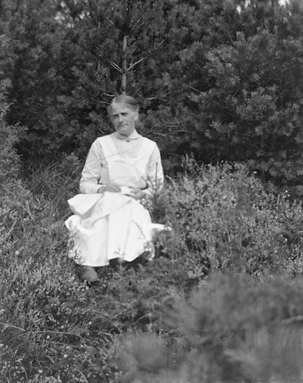 Enligt notering: "Kvinna i det gröna, Augusta Andersson, Trättestad".