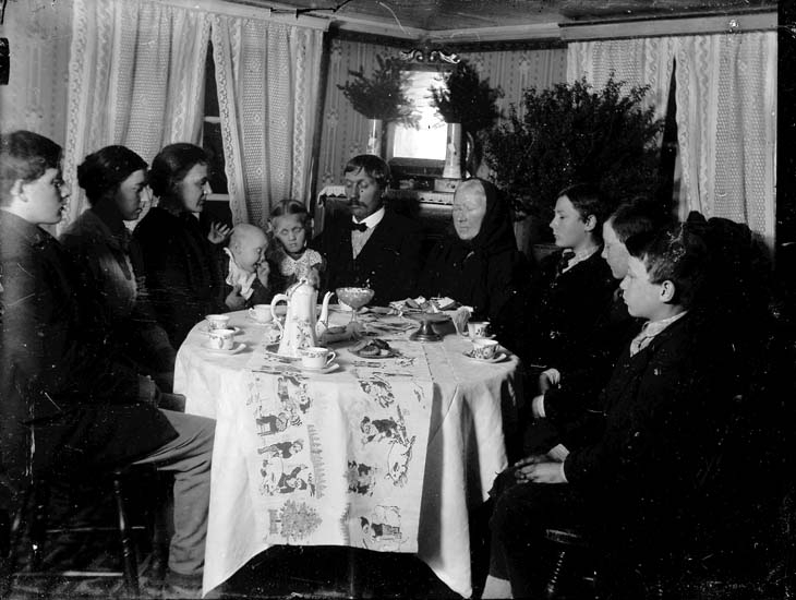 "Vid kaffebordet i juletid. Fam. Henrik Johansson Kärill omkr. 1919".