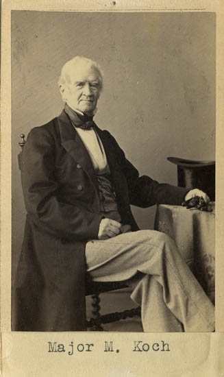 Text på kortets baksida: "Major Michael. Koch, f. 1792-1869. Satt i stadsfullmäktige från 1863-68. ".