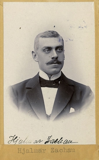 Text på kortets baksida: "Kassör vid U-a tändsticksfabrik Hjalmar Zachau, f. 1863 d 1950".