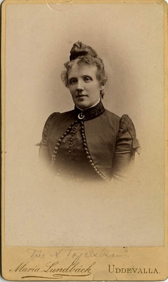 Text på kortets baksida: "Fru Agnes Fogelström, g. m. kapten Adolf Fredrik Fogelström".