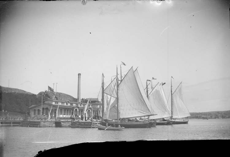 Enligt text som medföljde bilden: "Lysekil. Segelbåtarna från herrbassinen 1897."