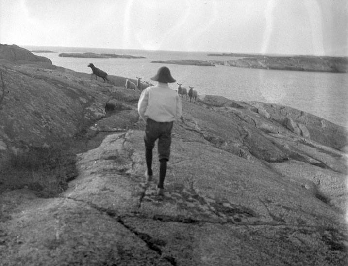Enligt text som medföljde bilden: "Olof och fåren på Flatholmen."
