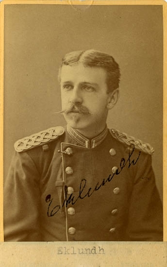 Text på kortets baksida:"Kapten Carl Gustaf Knut Eklundh, f. 1848 21/12.".