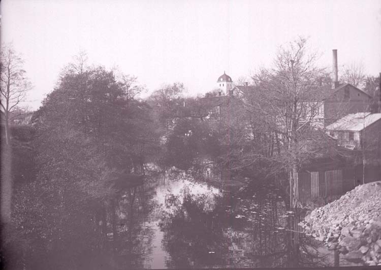 Enligt text som medföljde bilden: "Uddevalla, Utsikt vid vattenfallet. Okt 05."
