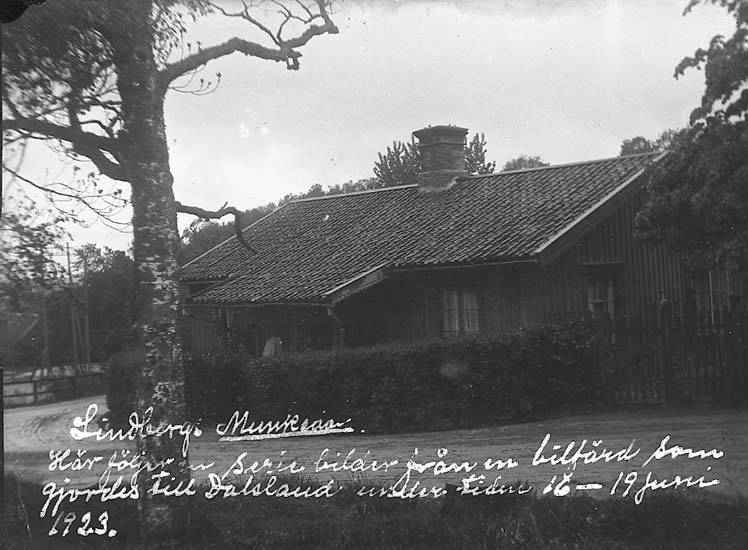Enligt text på fotot: "Lindbergs Munkedal. Här följer en serie bilder från en bilfärd som gjordes till Dalsland under tiden 16-19 juni 1923".