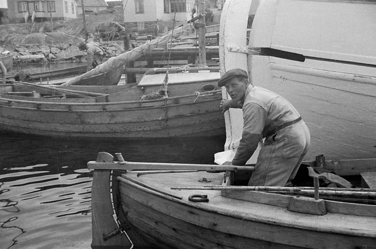 Ingvar Nordenberg skjuter ut sig och båten i Käringöns hamn