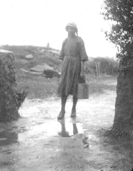 Enligt notering: "Flicka med mjölkspann, Lisa Karlsson, Skistad".