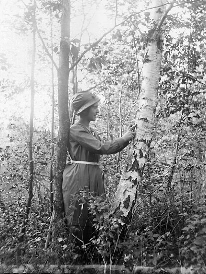 Enligt notering: "Ung kvinna vid björk, Ester Johansson, St. Anrås".