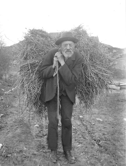 Titel: Enligt notering: "Med höknippe på ryggen, Karl Krok, Skistad, Skräddare".