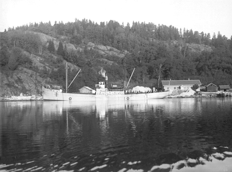 Enligt senare noteringar: "Fraktbåten "Sven" (tillhör okänt rederi) lastar kvartsprodukter vid gamla Saltkällans brygga." (BJ)