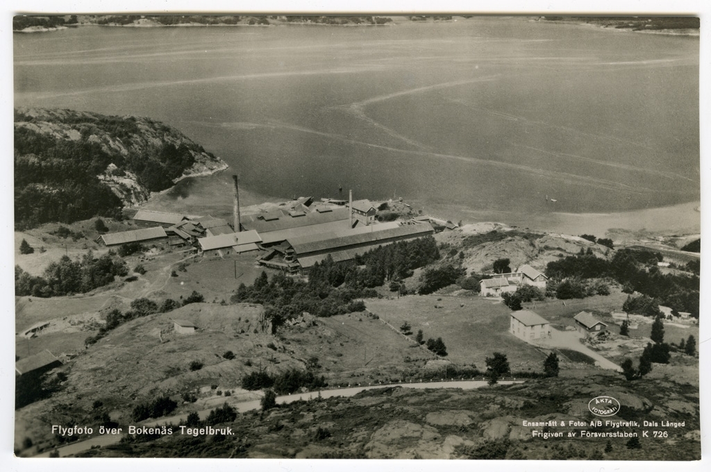 Text på kortet: "Flygfoto över Bokenäs Tegelbruk".