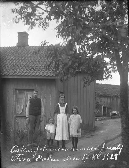 Skrivet på bilden: "Oskar Johansson med familj. Stora Dalen 17/8 1928."
