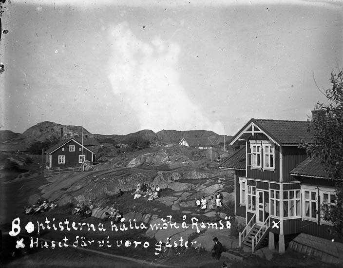 Skrivet på bilden: "Baptisterna hålla möte å Ramsö. X Huset där vi voro gäster."
