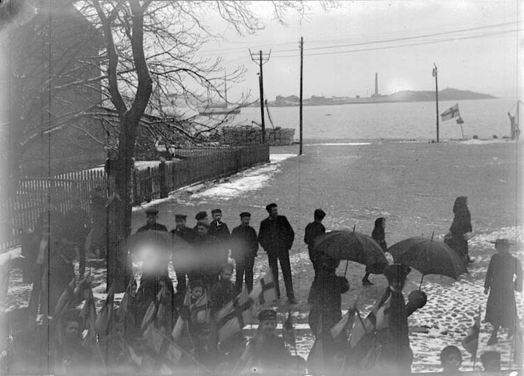 Enligt text som medföljde bilden: "Lysekil. Flaggtåget vid Roskildefesten 20/2 08."